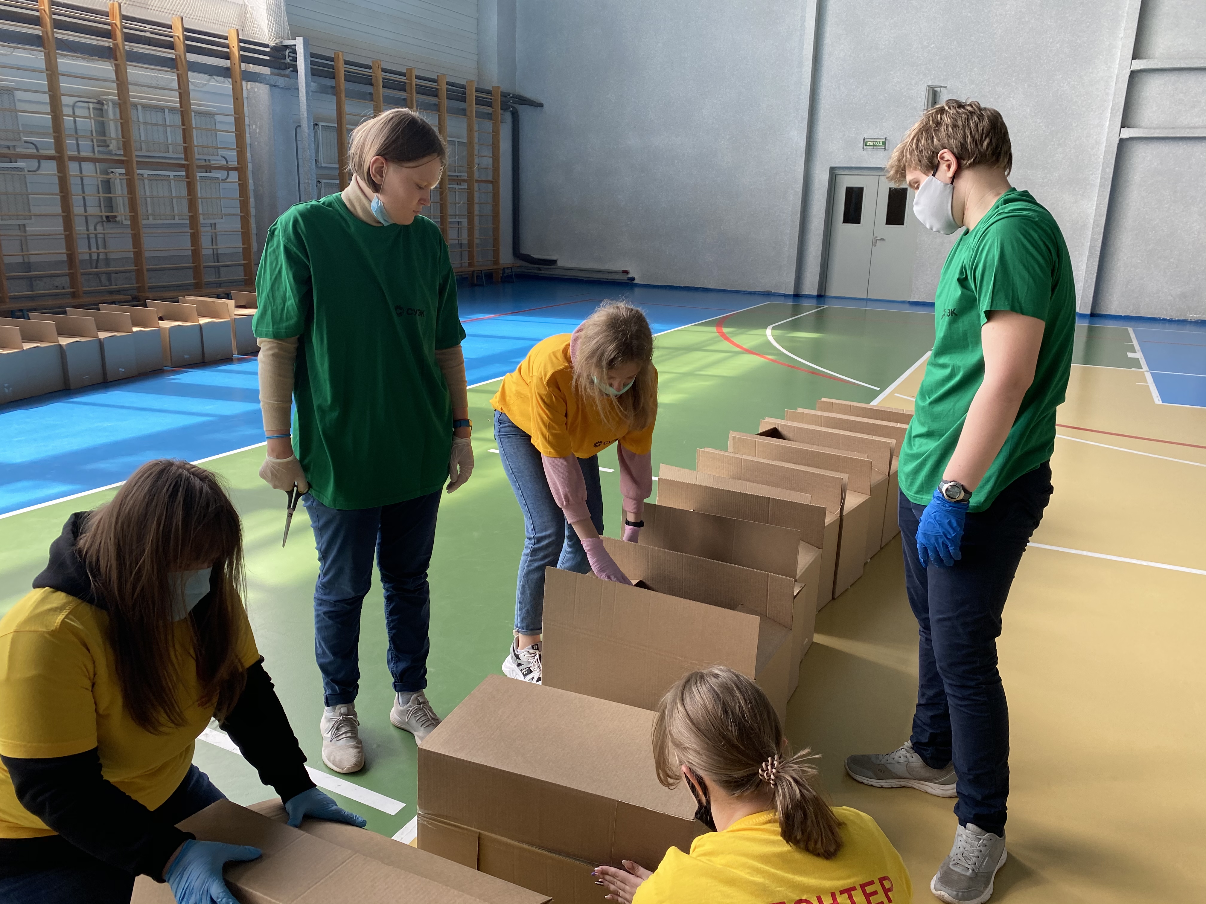 Волонтёрский штаб «Наши люди», созданный по инициативе Губернатора Красноярского края Александра Викторовича Усса, передал городу Шарыпово 132 продуктовых набора для оказания помощи одиноким многодетным родителям, воспитывающим двух и более детей, пострадавшим от пандемии коронавирусной инфекции. Волонтеры штаба «Добровольчество» Молодежного центра города Шарыпово занимаются раздачей и доставкой продуктовых наборов.