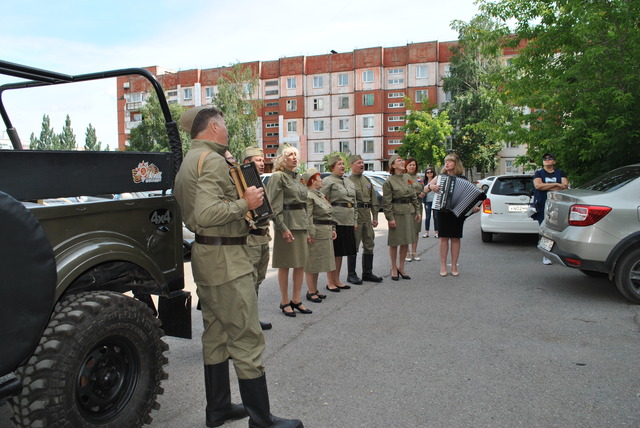 Еще одним мероприятием праздника стала фронтовая агитбригада, которая проехала с мини-концертами по дворам бывших фронтовиков. Артисты исполнили под окнами ветеранов песни военных лет, тепло поздравили их с юбилеем Победы и вручили цветы.