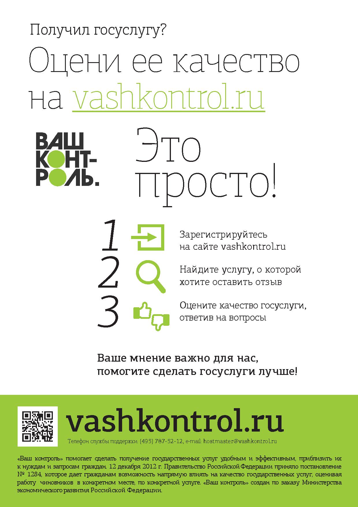 Электронный Интернет-сервис "Ваш контроль" предоставляет гражданам и организациям возможность оставлять оценки, отзывы и мнения о качестве государственных услуг по результатам их представления соответствующими территориальными органами МВД России.