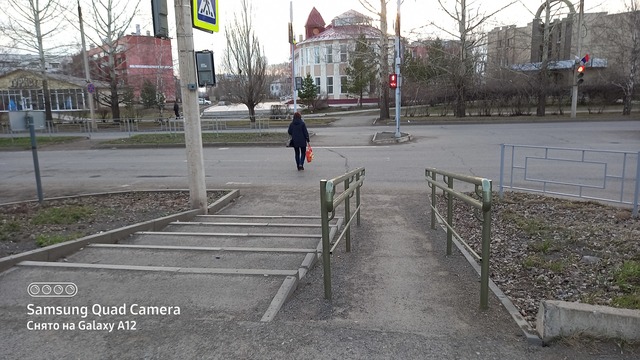Особенности дорожного рельефа на этом участке улицы Горького вызвали необходимость обустроить подъем на пешеходный тротуар в виде ступенек, а для маломобильных шарыповцев параллельно выровняли спуск в виде заасфальтированного пандуса с двусторонними перилами. Об этом городские власти давно просила городская организация инвалидов «За равные права». Также, в связи со сложностью перекрестка, согласно стандартам он должен был быть оборудован звуковым сигналом для слабовидящих пешеходов. Это требование теперь также выполнено.
