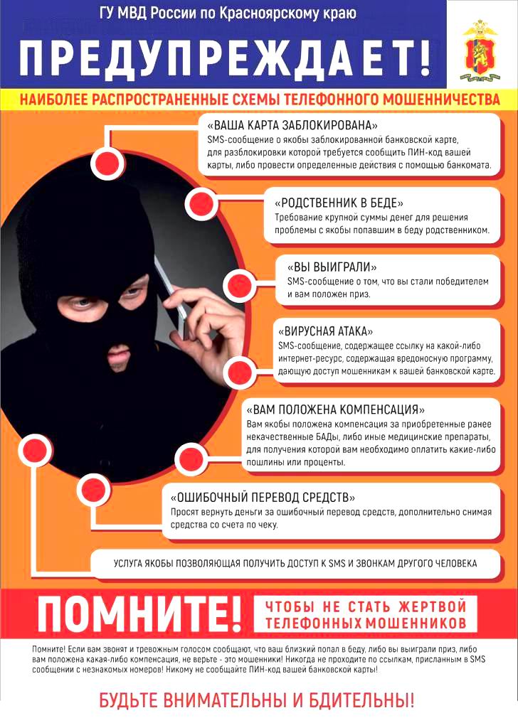 Чтобы не поддаться на уловки злоумышленников, достаточно знать, как они действуют, и соблюдать правила пользования мобильными телефонами, банковскими картами и компьютерами, в этой связи предлагаем внимательно ознакомиться с содержанием этой профилактической информации: