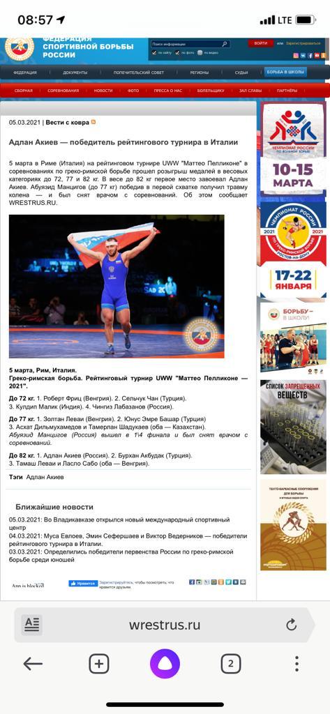 Адлан Акиев - победитель рейтингового турнира в Италии