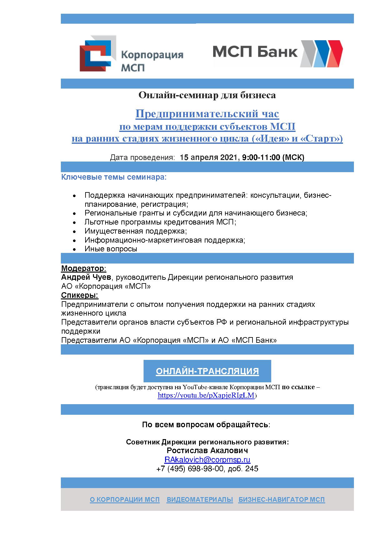 Предпринимательский час по мерам поддержки субъектов МСП на ранних стадиях жизненного цикла («Идея» и «Старт»)