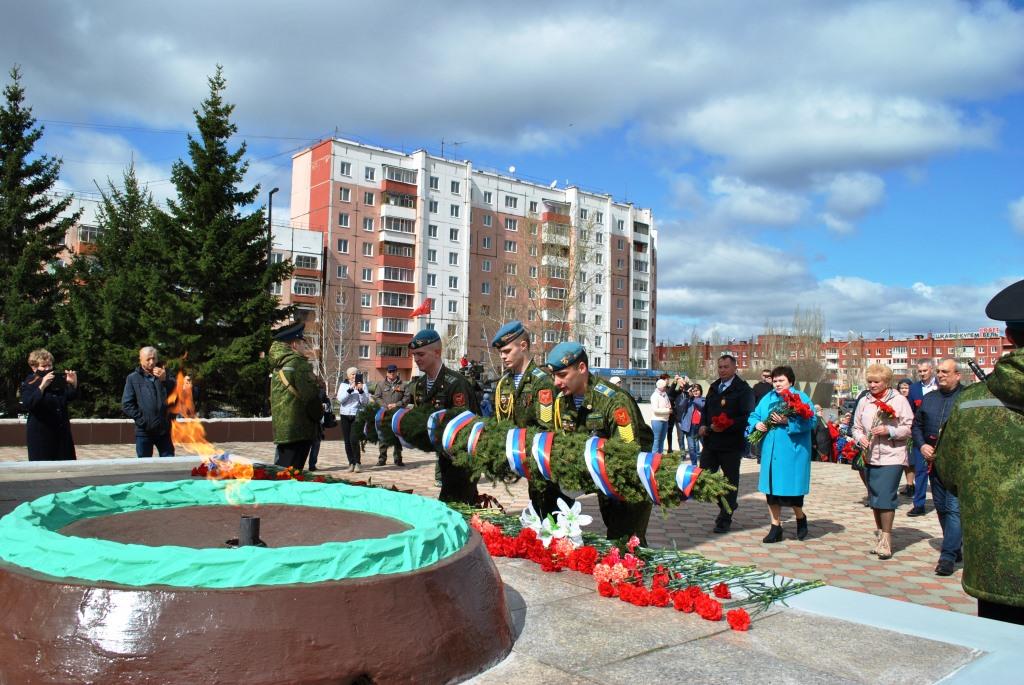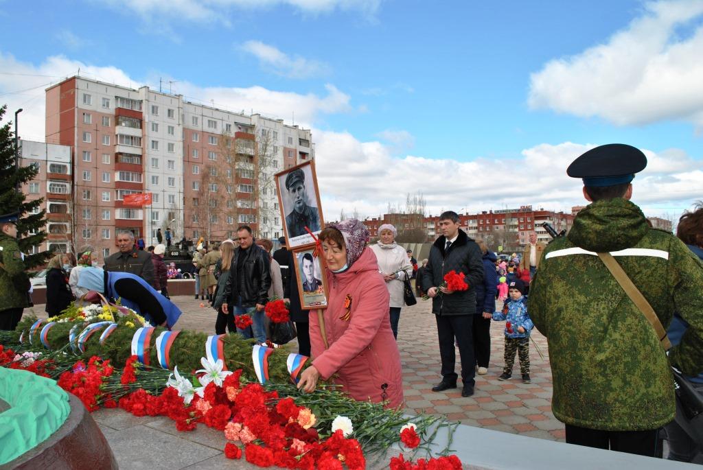 Торжественное возложение цветов в день 9 мая состоялось у всех трех мемориалов города – в Шарыпове, поселках Дубинино и Горячегорск. В Домах культуры в поселках состоялись праздничные концерты. А в Шарыпово на  стеле Победы в с 9 утра загорелся Вечный огонь, и кадеты встали на торжественную Вахту памяти. В 11 часов состоялось возложение венков и цветов к мемориалу, а по окончанию церемонии на ступенях памятника выступила фронтовая агитбригада. На проспекте Энергетиков зазвучала радиогазета с поздравлениями ветеранам и всем шарыповцам от главы города Натальи Петровской, председателя Шарыповского городского Совета депутатов Тамары Ботвинкиной, руководителей общественных организаций и трудовых коллективов. Звучали песни военных лет и рассказы об исторических событиях Великой Отечественной войны. Многие окна в домах стали «окнами Победы» -жители украсили их символикой праздника. А фронтовая агитбригада отправилась  по адресам бывших фронтовиков, которым здоровье позволило  принять у себя акцию «Концерт у дома ветерана». Первым адресатом стал Михаил Викулович Веселков – фронтовик-артиллерист, воевавший на Прибалтийском фронте и под Кенигсбергом, награжденный боевой медалью «За Отвагу». В декабре этого года Михаил Викулович готовится отметить 100-летний юбилей!