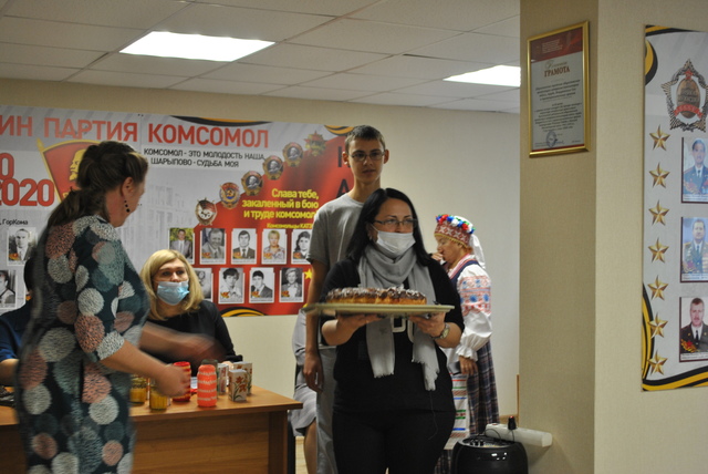 Поздравить ветеранов помимо официальных лиц пришли еще студенты и представители руководства Шарыповского многопрофильного колледжа. Ребята своими руками сделали для пожилых людей сувениры, испекли аппетитный праздничный пирог и, конечно, спели для них песню.