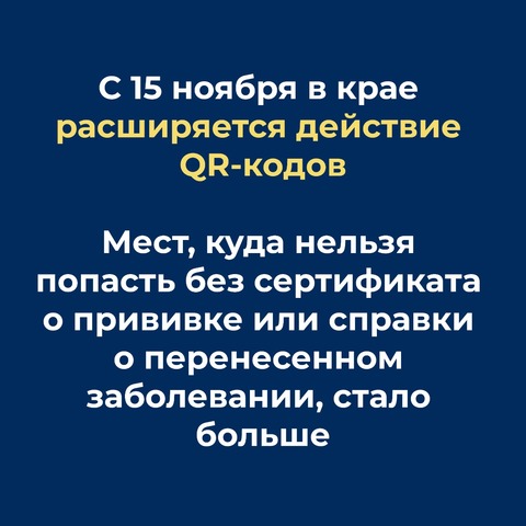 С 15 ноября в Красноярском крае расширяют систему проверки QR-кодов. Подтверждать прививку или перенесенную болезнь теперь придется не только в торговых центрах и на стадионах. Об этом сообщили в правительстве региона. Подробности — в карточках.