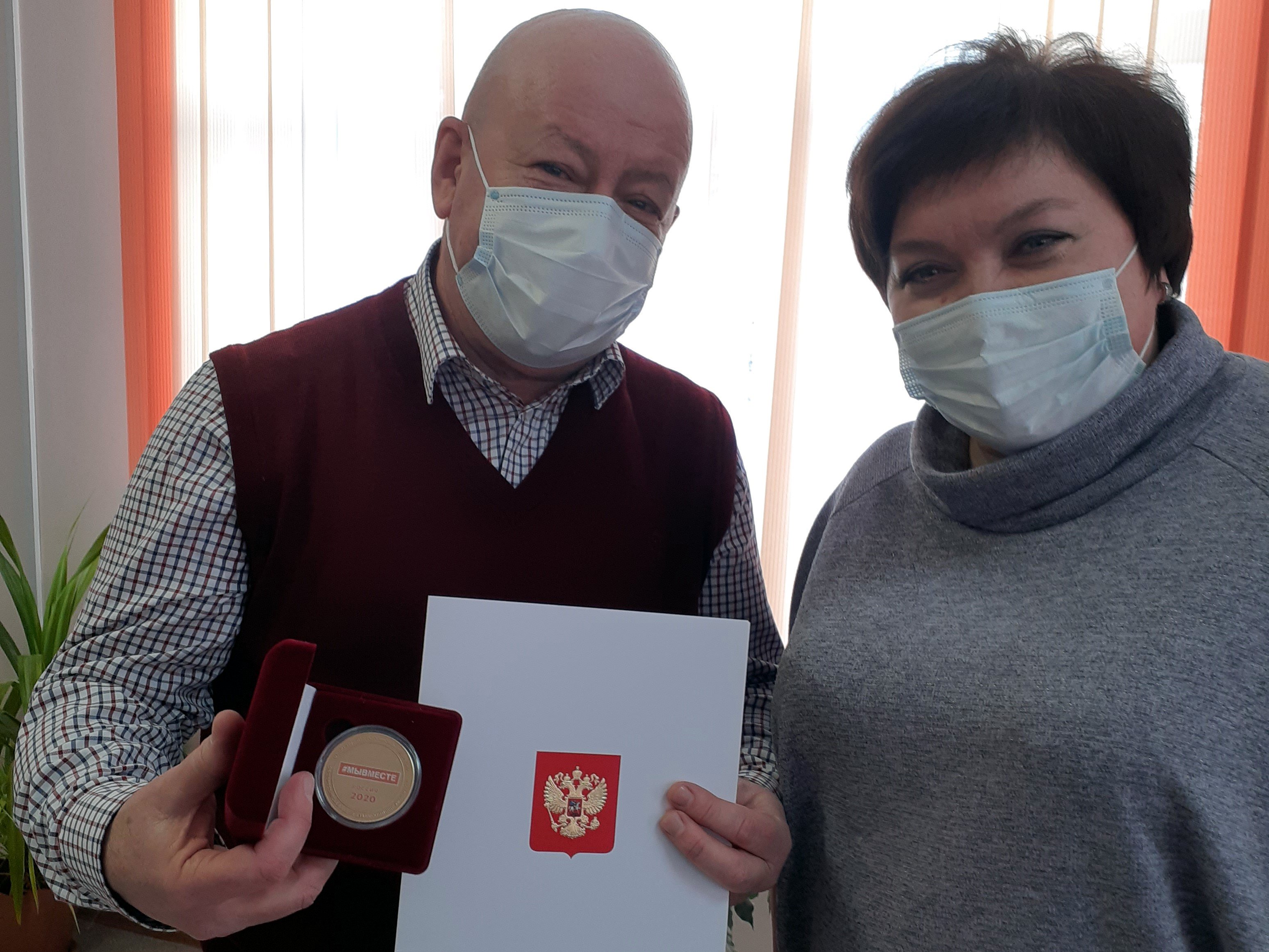 Известному шарыповскому предпринимателю Александру Обручу глава города Наталья Петровская вручила Благодарственное письмо и Почетный знак Президента России Владимира Путина за участие в волонтерском движении #Мывместе.
