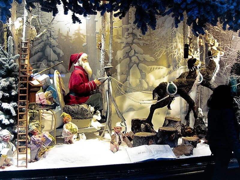 При новогоднем оформлении витрин рекомендуем использовать светодинамические и декоративные элементы, декоративные конструкции: ели (искусственные/живые), надувные фигуры, малые и крупные декоративные формы (светящиеся фигуры и др).