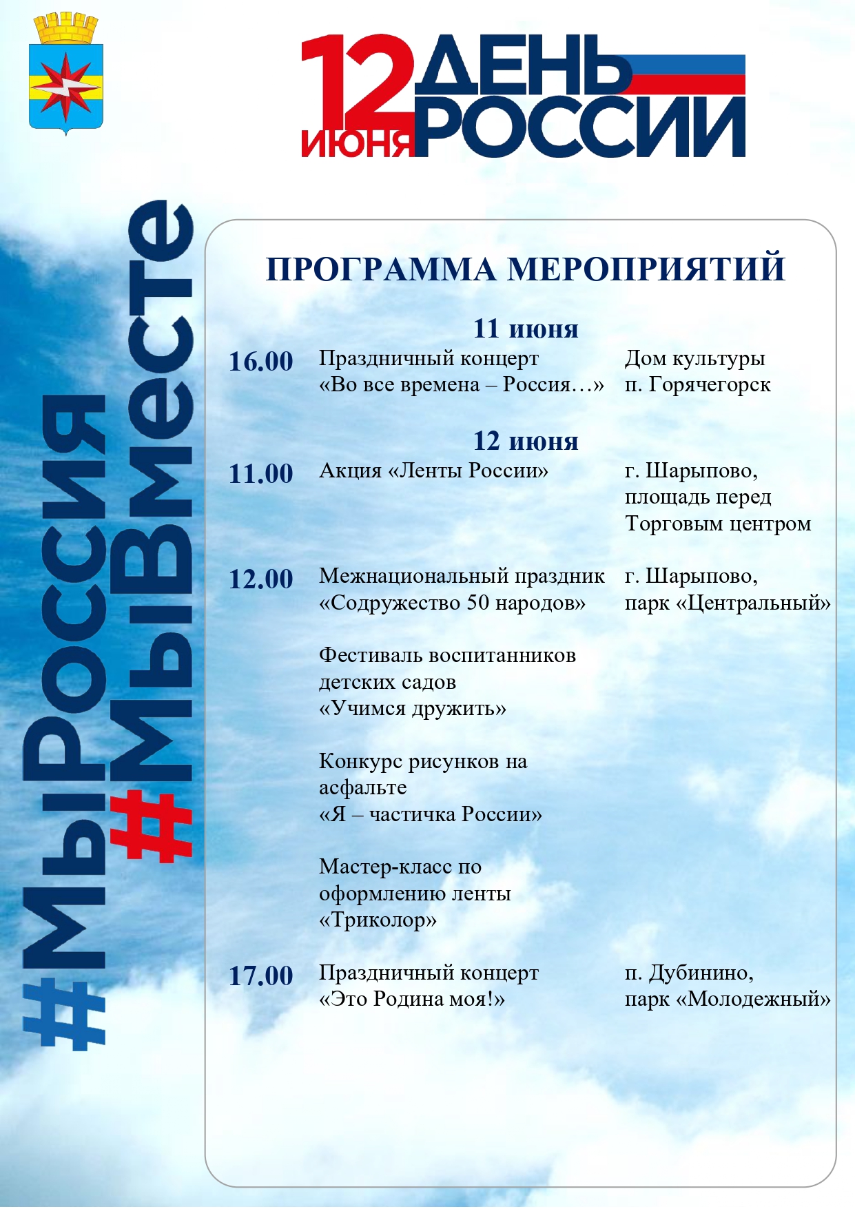 Афиша городских мероприятий, посвященных празднованию Дня России