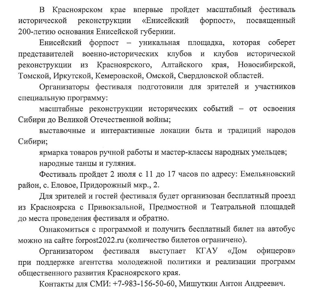- О фестивале исторической реконструкции «Енисейский форпост»