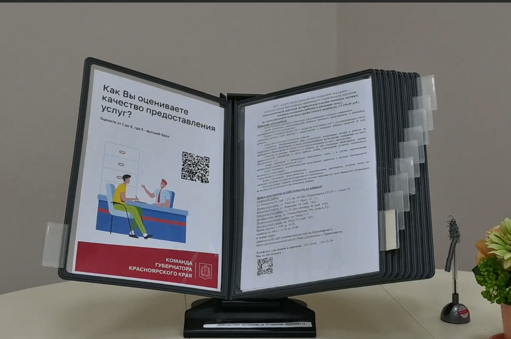 В Администрации города Шарыпово граждане могут оставить свое мнение о соблюдении сроков рассмотрения обращений граждан при помощи QR-кода, размещенного на листовке на стенде в фойе.