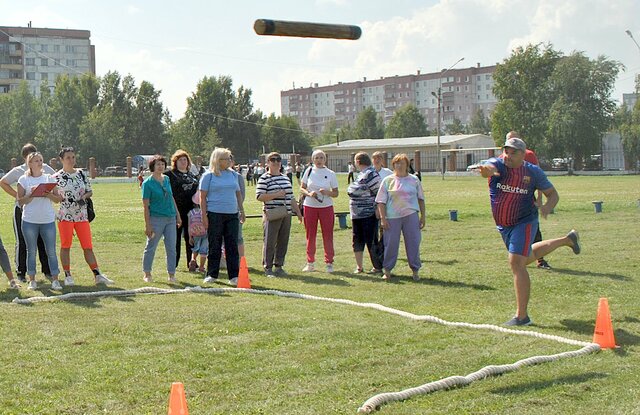 Особый интерес в этом году у участников вызвали состязания по метанию бревна. Несмотря на то, что вес “бревнышка”, как сообщил главный судья этих соревнований Валерий Панфилов, тянет на 12 с половиной килограммов.