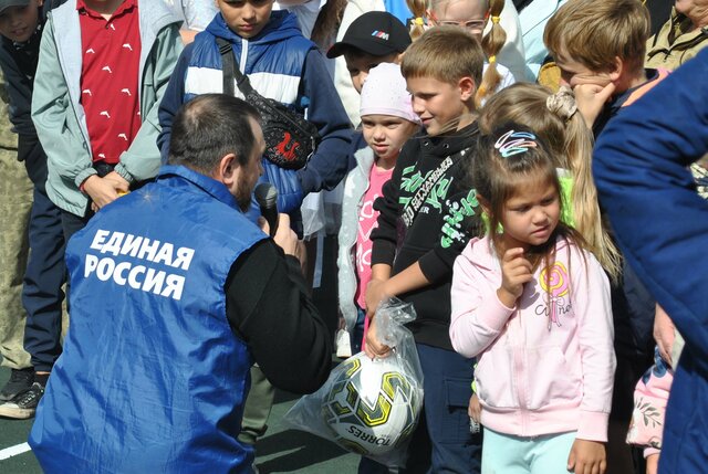 Первый символический гол в футбольные ворота новой площадки забил Илья Артемьев,  юный воспитанник тренера городской спортивной школы по футболу,  участницы Первенств Красноярского края по женскому футболу, члена  сборной команды края Ксении  Черняк.