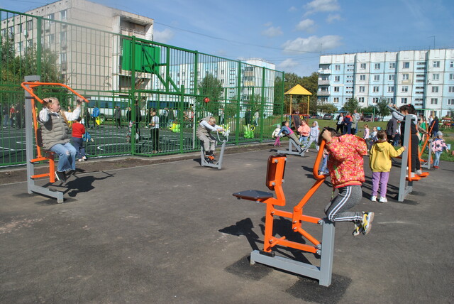 А затем площадка поступила в полное распоряжение жителей Северного микрорайона, как юных, так и взрослых, которые заполнили и игровое поле, и тренажеры.
