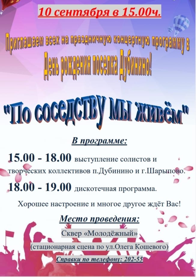 Желаем дубининцам счастья, крепкого здоровья, радости, оптимизма, благополучия, уверенности в завтрашнем дне, успехов во всех делах и начинаниях на благо родного поселка! Пусть жизнь каждой семьи будет наполнена душевным теплом, светом и добротой!
