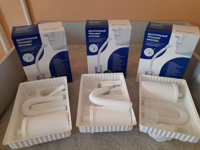 Здесь и аппараты "Алмаг", "Дарсонваль", скандинавские палочки, дыхательный тренажер Фролова, различные электрические массажеры (для шеи, стоп,), рециркуляторы, портативные спирометры, музыкальный проигрыватель, колонка и микрофоном, игры для развития памяти, материалы для оздоровительных процедур (травы для чая, парафин, арома-масло и др.). Всего не перечислить!