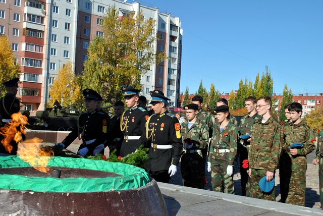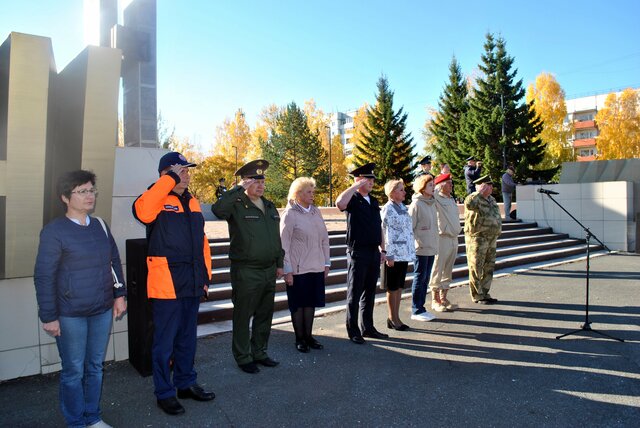 В честь павших героев, которые отдали жизнь за Отечество, была объявлена минута молчания. К стеле возложили венок и прозвучал церемониальный залп из автоматов.