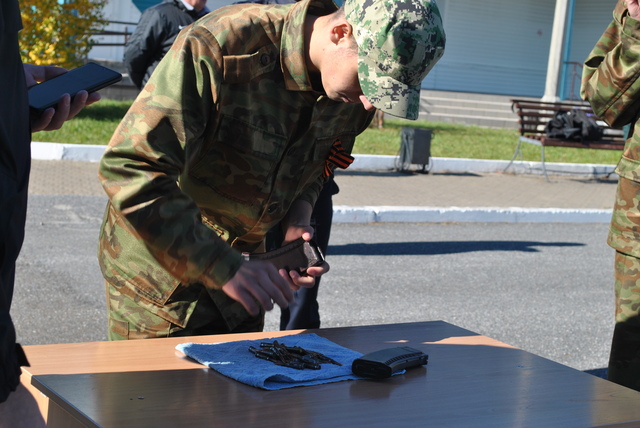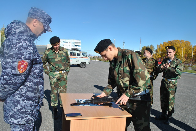 На площади перед спорткомплексом «Сибирь» команды начали соревнования. Им предстояло пройти восемь этапов. Ребята упорно готовились последние несколько недель. И теперь демонстрировали судьям навыки строевой подготовки, рукопашного боя, стрельбы из пневматической винтовки, сборки разборки автомата, снаряжение магазина автомата, скорость надевания костюма химическо-биологической защиты. Также в программе был силовой этап — подтягивания на перекладине у юношей и сгибание и разгибание пресса у девушек. А на интеллектуальном этапе участники команд демонстрировали знание государственной символики Российской Федерации.