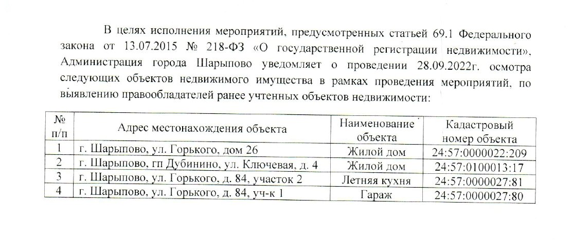 Об осмотре объектов недвижимого имущества для выявления правообладателей
