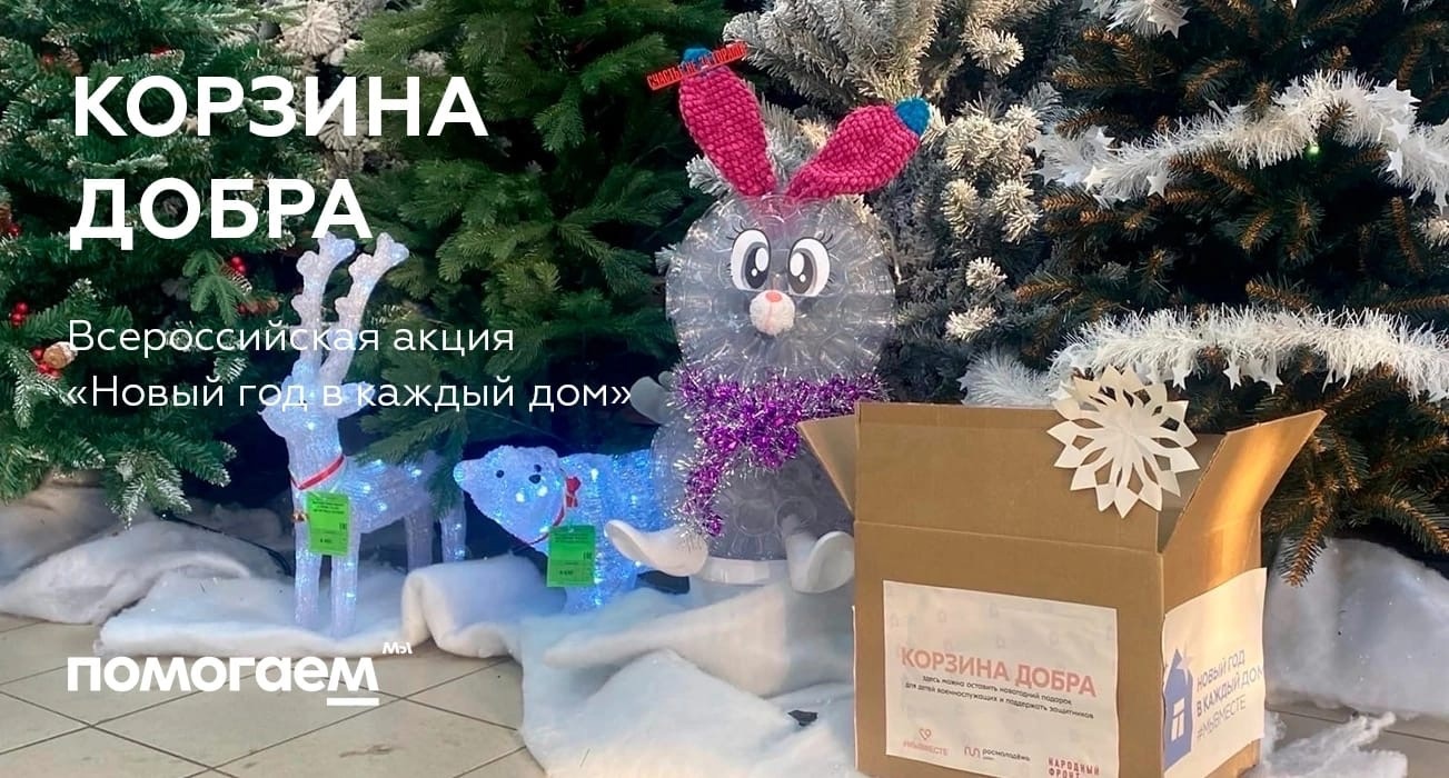 В корзину можно положить новогодние товары и сладкие подарки. После, собранные подарки будут переданы в ходе адресных поздравлений военнослужащих и их детей, а также нуждающихся граждан.