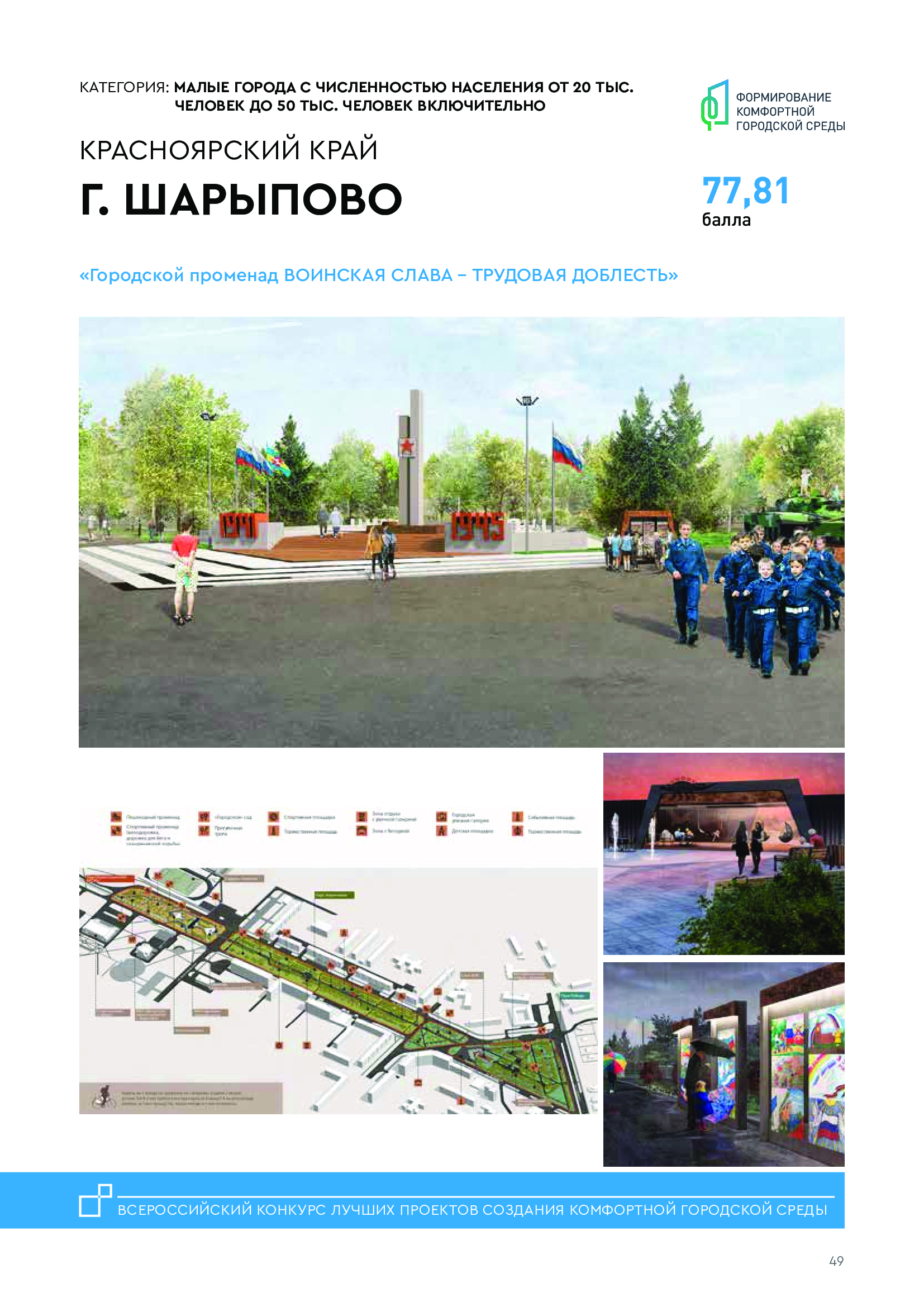 Проект города Шарыпово «Городской променад воинской доблести и трудовой славы» вошел в число победителей VII Всероссийского конкурса лучших проектов создания городской среды. Торжественная церемония подведения итогов конкурса состоялась в Москве 23 декабря.