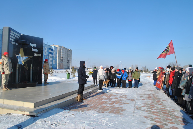 У площадки монумента собрались представители ветеранских организаций, администрации города и Совета депутатов, почетные граждане Шарыпова, общественники, юнармейцы и школьники. Со словами приветствия к ним обратились первый заместитель главы города Дмитрий Саюшев, председатель местной общественной организации «Воинское братство» Владимир Борисович Баршинов, председатель Совета ветеранов войны, труда и правоохранительных органов Василий Коваль, почетный гражданин города Шарыпово Алексей Ворошилов.